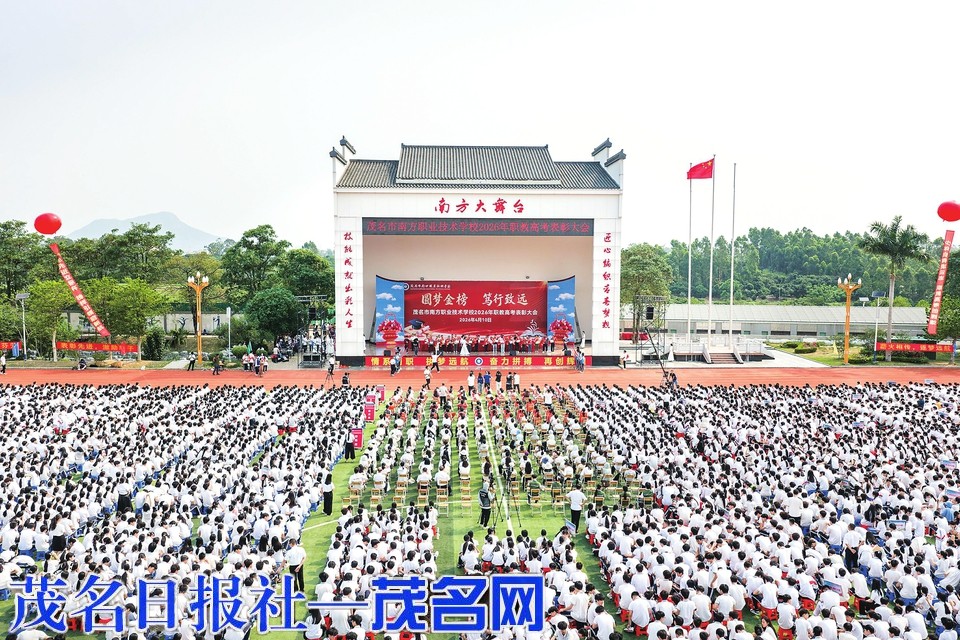 茂名网讯 4月10日上午,茂名市南方职业技术学校2026年职教高考表彰大会隆重举办。全校师生、家长代表及各界嘉宾齐聚校园,一万多人共同回顾2026年职教高考的辉煌战绩,总结高考备考经验,表彰先进典型,擘画学校高质量发展新蓝图。