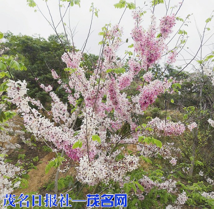 茂名网讯 春风送暖,百花争艳。近日,高州市植物园内迎来了一场浪漫的粉色花潮,园内的泰国樱花(花旗木)迎来盛花期,满树繁花如云似雾,粉白相间的花瓣缀满枝头,勾勒出春日里最甜蜜的生态画卷,吸引大批市民游客前来踏青赏花、打卡留影,尽享春日美好。