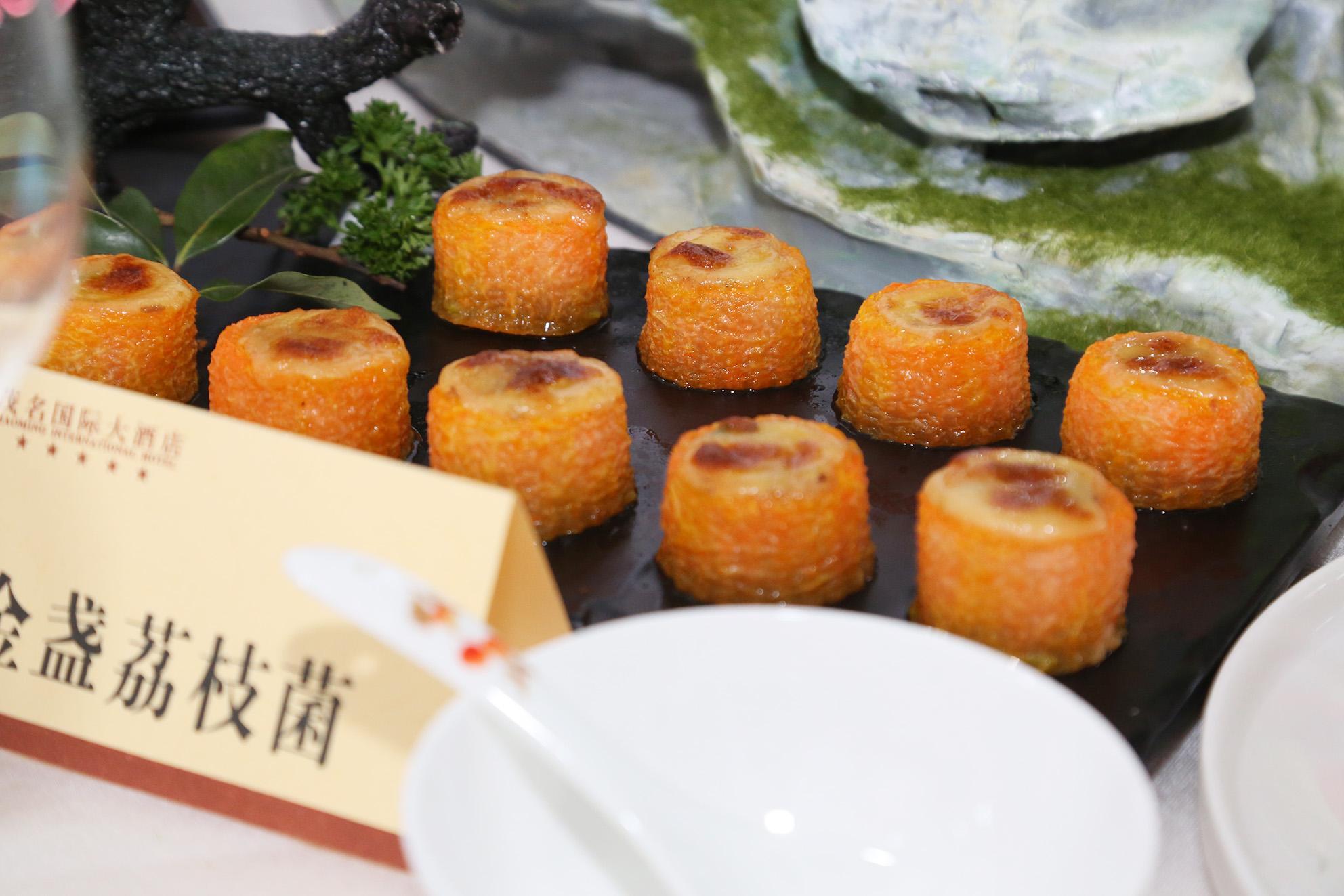 据介绍,荔枝的烹饪价值有三方面:一是极致的新鲜风味,荔枝果肉晶莹饱满,自带花果香和自然清甜;二是丰富的汁水感,能为菜品增添润泽的口感;三是时令性带来独特价值。粤菜重时令,讲究不时不食,荔枝与粤菜的融合具有天然的契合度,粤菜的精髓在于追求食材本味,荔枝清甜不腻,汁水丰富的特点能够完美融入粤菜烹饪哲学,它不仅能提升菜品的层次感,更能为传统粤菜注入时令活力和创新元素。荔枝的清甜是核心,洁白的果肉中迸发的蜜意,需巧妙搭配才能避免甜腻感,达到和谐统一。如荔枝能很好地包容高汤菌菇的天然鲜味,荔枝的甜形成醇厚而清润的滋味。