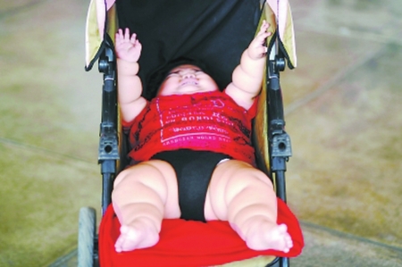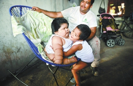 冈萨雷斯出生时体重3.5千克,和现年3岁的哥哥出生时体重差不多。等两个月大时,小家伙体重猛增至10千克,之后8个月又长了18千克。如此体重,小家伙无法爬或走,甚至不能翻身,顶多能直直坐着。
