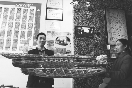 本报综合报道 11月13日,重庆男子在彩票店里展示自己用废旧彩票叠的“航母”。据了解,重庆长寿41岁市民孟道平是当地福彩工作站的一位工作人员,由于平日里顾客会将使用过的废旧彩票留在店里,便在工作之余叠出“航母”。该“航母”长1.5米,宽60厘米、高70厘米,全部完成共需要约1.2万张彩票。