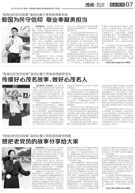 “很感谢有这样一个平台,让我们全市各个单位的职工能聚集在一起,分享自己身边的党员故事,互相学习交流。我也很开心,因为这次是我自参加工作以来,第一次参加这种大型演讲比赛,这次能获奖感到很荣幸。”朱昭在接受记者采访时说。