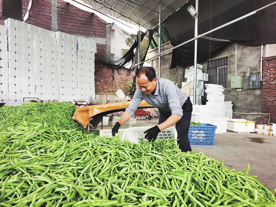 菜农将刚采摘回来的四季豆分装打包。 茂名日报社全媒体记者吴昊摄