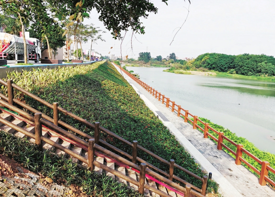 近期,电白区沿沙琅江畔新建成一段长5公里的好心碧道,起点位于坡心镇七星村委会,终点至潭莲村委会。沿线江景如画、产业兴旺,兼具城市与乡村双重风貌。目前该段碧道已全面完成河岸垃圾清理、路灯、标识标牌、苗木种植养护等工程,并建成碧道广场主体和文化活动中心,碧道魅力初现,成为沙琅江畔一道亮丽风景。 文/图 茂名日报社全媒体记者岑稳