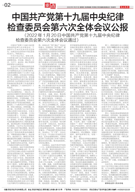 中国共产党第十九届中央纪律检查委员会第六次全体会议公报