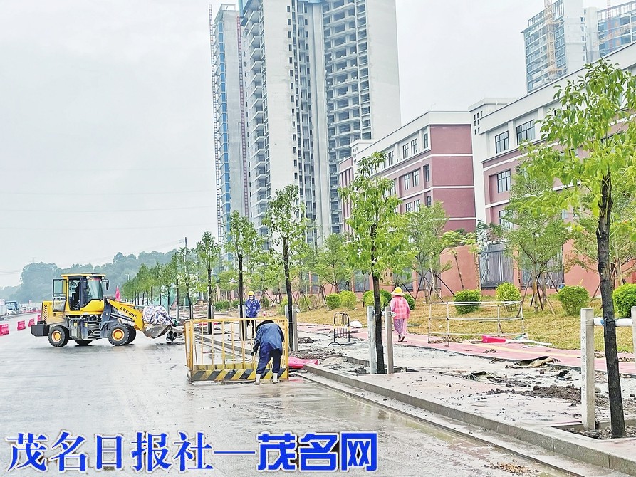 甲子大道项目工程进入绿化阶段。1月23日,在甲子大道与中德大道相交路段,施工人员冒雨施工,争取工程早日完工。 茂名日报全媒体记者李颜东摄