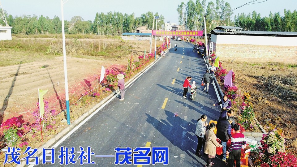 昨日早上,阳光明媚,茂名晚报记者在小良那庄村现场看到,一条崭新的硬底化沥青路围绕着村庄铺设,中间划着黄色标线,路沿种着鲜花和绿化树,路沿每相隔约20米,均安装好路灯柱。那庄岭头村那条约1公里长的水泥混凝土大路,宽约4.5米,修得平整结实,令人惊喜。
