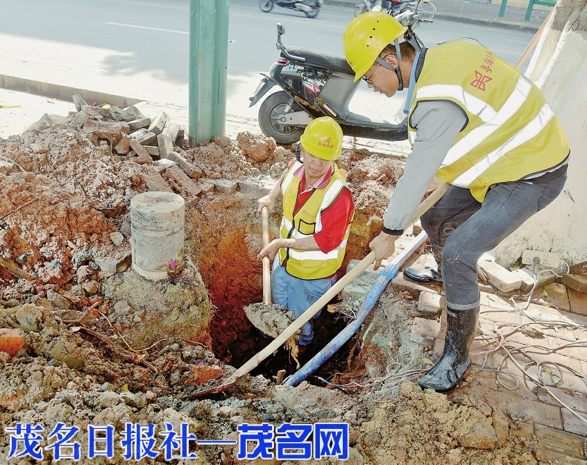 昨日上午,市区人民中路与迎宾一路交汇处路段供水管道爆裂漏水,水务人员接报后快速赶到现场抢修。经过6个多小时的全力抢修,恢复正常供水。茂名日报社全媒体记者陈国汉摄