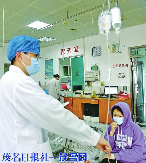 春节假期,医务人员坚守在自己的工作岗位上,为群众健康保驾护航。图为昨日医务人员在为患者提供周到而贴心的医疗服务。 茂名日报社全媒体记者陈国汉摄