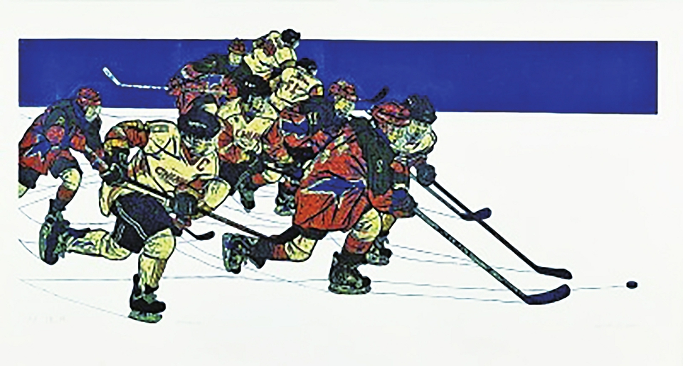 短道速滑、跳台滑雪、花样滑冰、钢架雪车,还有冰壶、冰球……一个个冬奥会体育项目成为艺术家们争相表现的主题。或是训练中的刹那,或是冲刺时的瞬间,冰雪骄子们争先恐后,追逐着梦想,如冰花绽放。孙晓晨的《冰雪盛宴》是融合了陶艺技法的一组雕塑作品,形态各异的瓷盘上,冰球选手短兵相接,短道速滑选手风驰电掣,冰壶运动员们步步为营……活灵活现的雕塑形象,立体地诠释出奥林匹克精神。