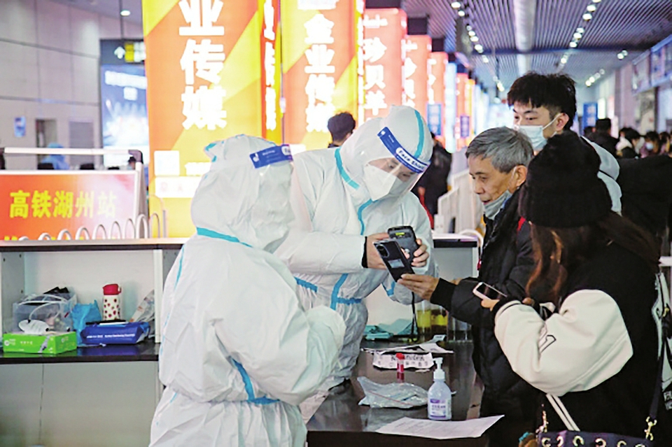 新华社记者李恒、宋晨2月6日,旅客在高铁湖州站便民核酸检测点进行核酸检测。新华社发(伊凡摄)