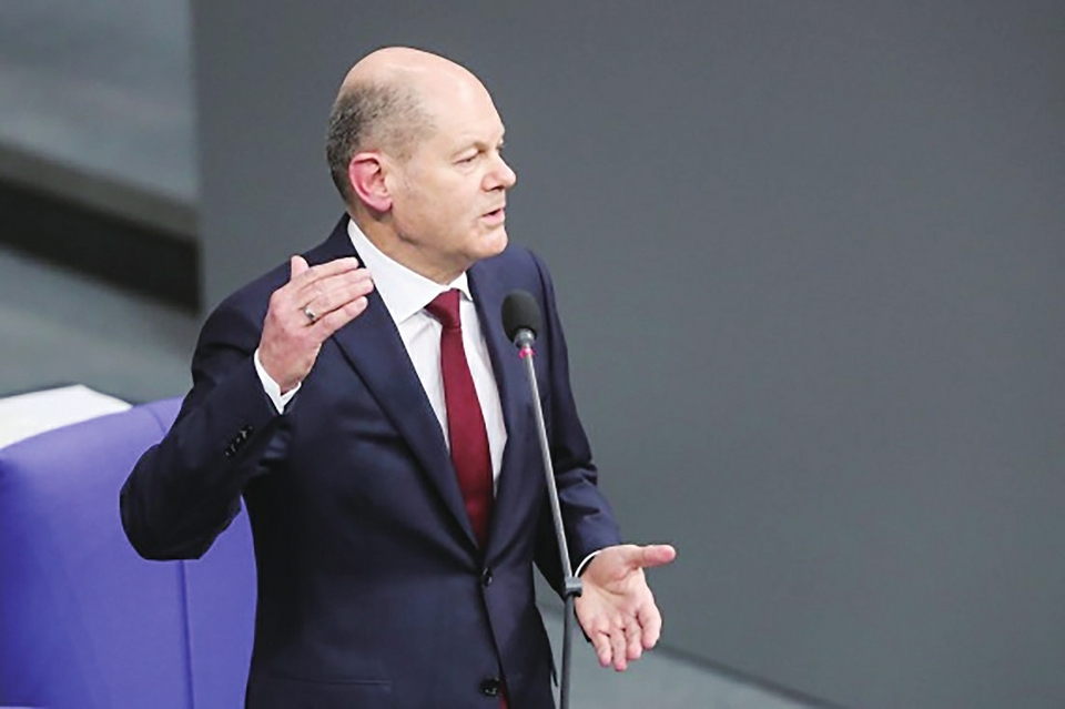 1月12日,德国总理朔尔茨在位于柏林的德国联邦议会接受问询。(新华社记者单宇琦摄)