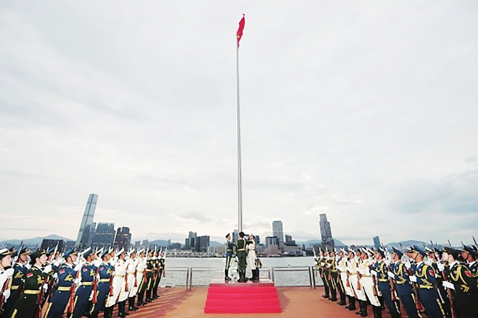 1月30日清晨,解放军驻香港部队在中区军用码头举行升国旗仪式。 新华社发(易定摄)