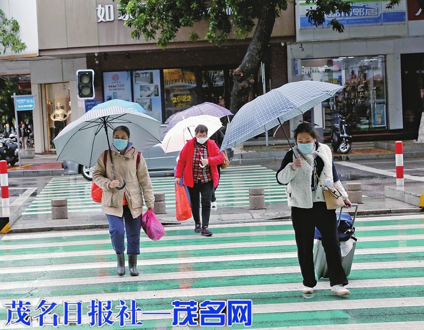 昨日,受冷空气和雨水的影响,市区天气寒冷,市民厚衣出行,防寒保暖。 茂名日报社全媒全记者李颜东摄