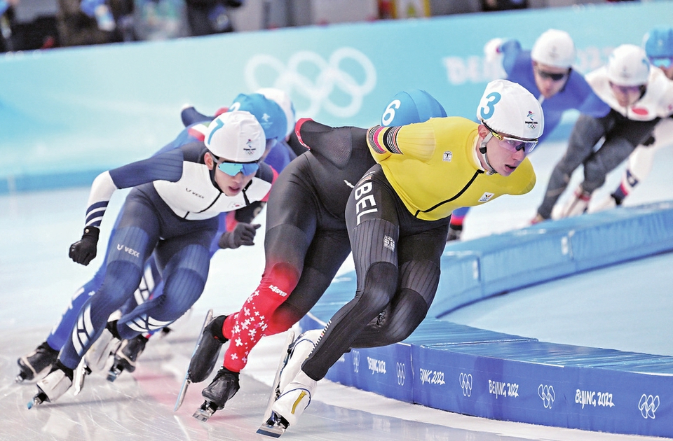 中国选手李奇时原本获得第10名,最终因犯规被取消成绩,郭丹获得第13名。2月19日,比利时选手巴尔特·斯温斯(右一)在比赛中。新华社记者王建威摄