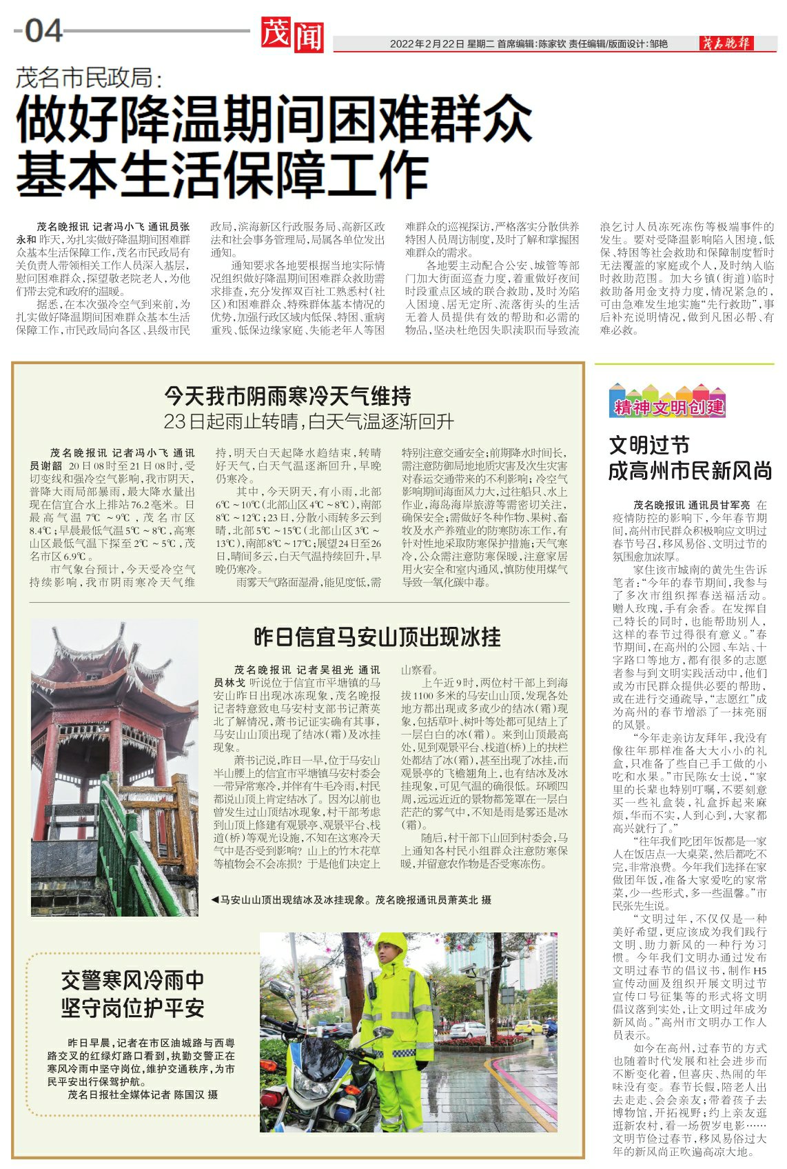 茂名市民政局:做好降温期间困难群众基本生活保障工作