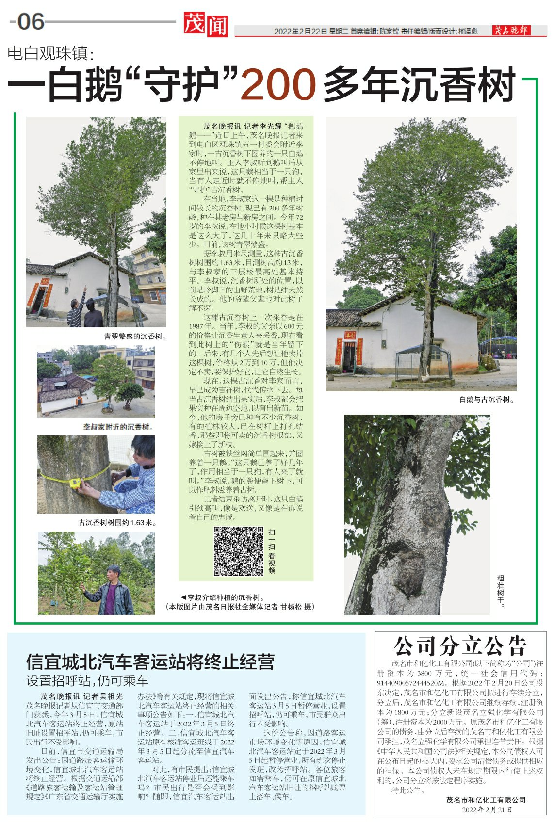电白观珠镇:一白鹅“守护”200多年沉香树