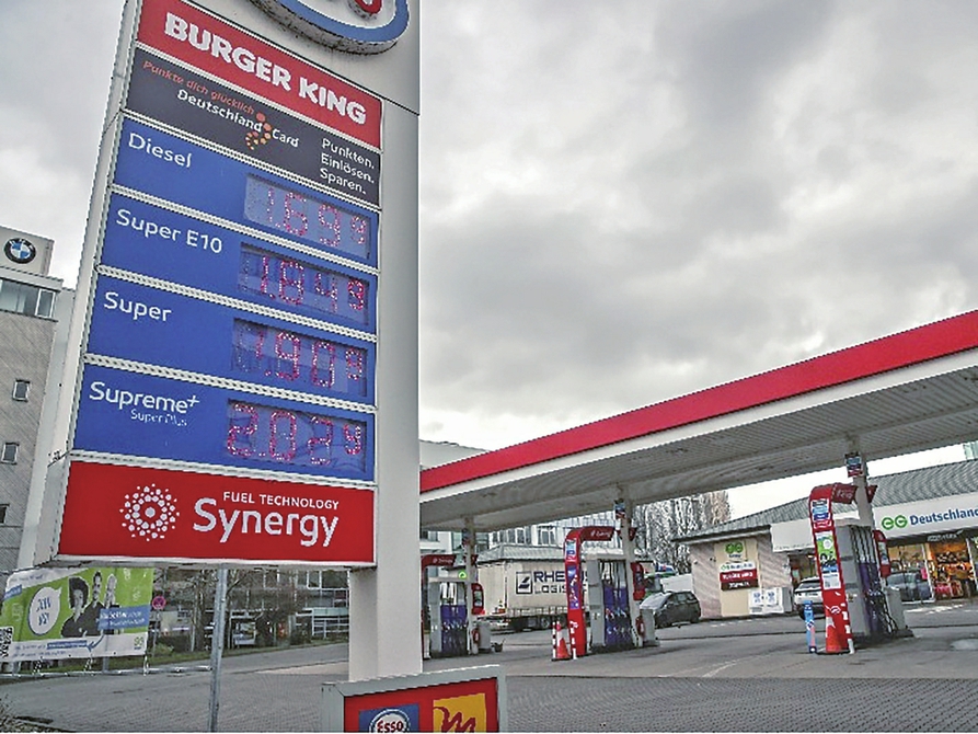这是2月25日在德国法兰克福拍摄的一家加油站屏幕上显示的油品价格。(新华社发,阿曼多·巴巴尼摄)