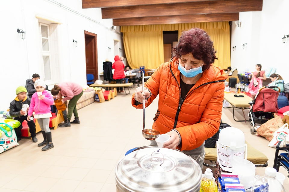 2月26日,乌克兰人在匈牙利东部边境的拜赖格舒拉尼一处临时安置 点 休息。 新华社发(弗尔季·奥蒂洛摄)