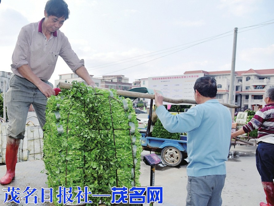 昨日,记者在茂南区新坡镇东江村看到,村民们正在将捆扎好的西洋菜过秤装车销往市场。据村民介绍,今年西洋菜喜获丰收,质量好,销路畅。