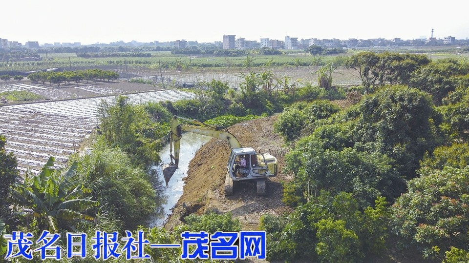 钩机清理河道。 茂名日报社全媒体记者甘杨松 摄