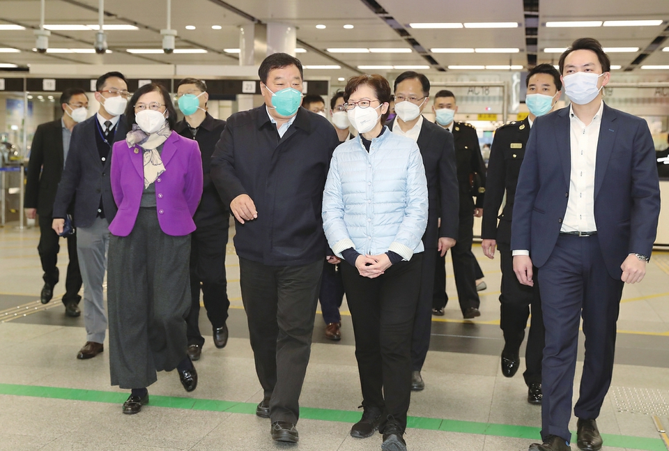 2月28日,香港特区行政长官林郑月娥等赴口岸迎接专家组一行。 新华社记者李钢摄