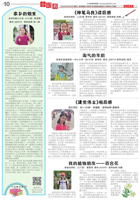 在1919年5月4日的那天,全中国的爱国大学生和热血青年们不顾个人安危,他们义愤填膺、斗志昂扬地在大街上游行抗议。“还我青岛保卫主权”“血战到底誓死力争”“严惩卖国贼”……一声声震耳欲聋的口号,让我深受震撼。“中国人,好样的!”我握紧拳头,心里在呐喊。那一天虽然有32名学生被捕入狱,但是从老师到学生,从农民到商人,每一个人都团结起来了!想要革命就要有人领导和指引,于是1921年7月,党的第一次全国代表大会在上海望志路106号秘密召开。