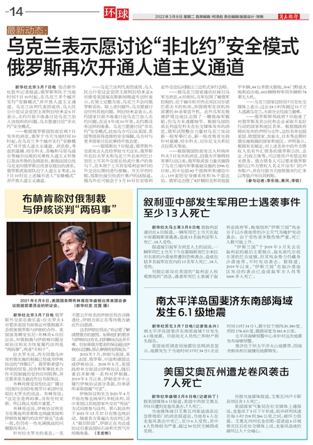 乌克兰表示愿讨论“非北约”安全模式俄罗斯再次开通人道主义通道