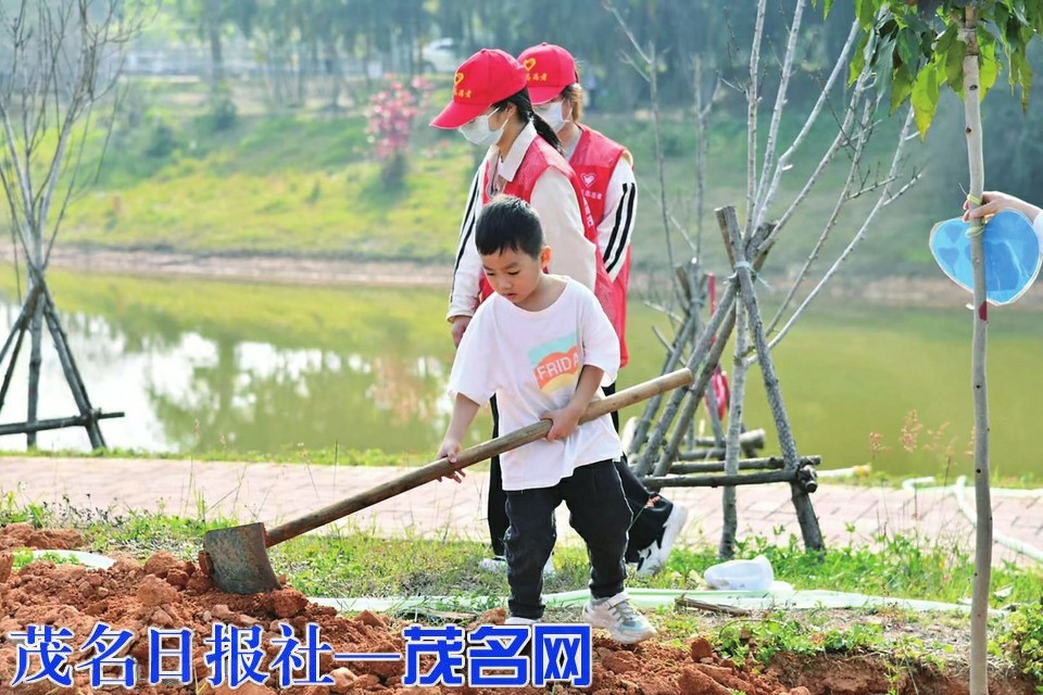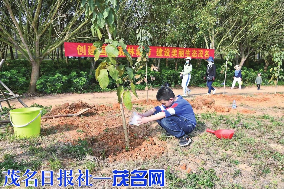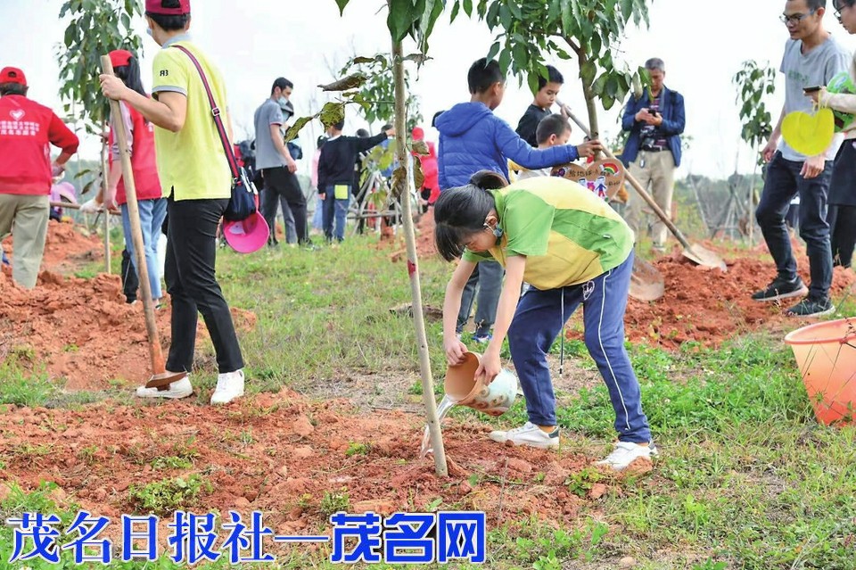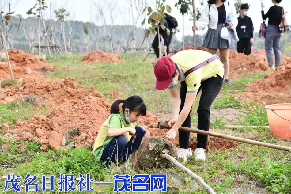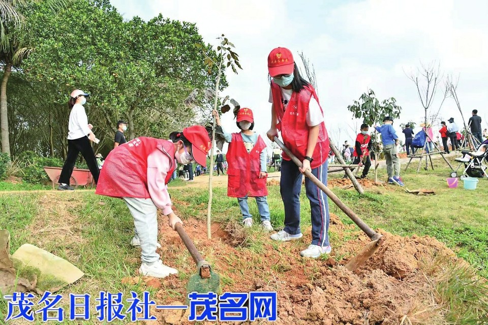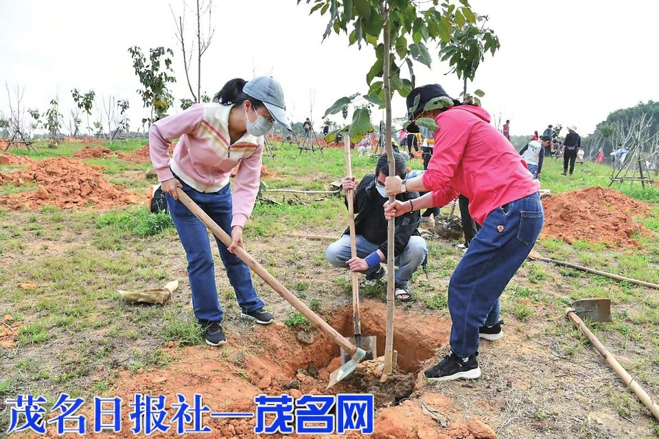 “栽植苗木时,要深挖浅栽,埋土深度在10厘米左右。”植树现场,不时有技术指导员来回穿梭,边示范边讲解植树流程和注意事项。市民挥锹铲土、扶苗覆土踩实、围堰浇水,树苗随运随栽随浇水,环环紧扣。铁锹一铲一铲落下,嫩绿的紫花风铃树苗渐次竖立起来,不到半日工夫,便栽上了200株树苗。据了解,茂名市开展全民义务植树活动41周年来,全市约有1.086亿人次参加,共植树约4.84亿株。