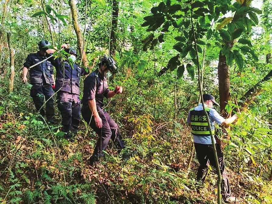 3月21日,广西藤县公安局民警在坠机现场周边搜救(手机照片)。