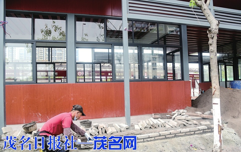 昨日,记者在茂名绿道二期工程官渡路看到,施工人员正在砌筑休息廊架驿站台阶。据了解,该驿站的建设已进入收尾阶段,预计本月底完工。