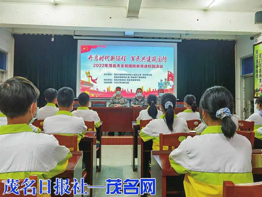 茂名晚报讯 通讯员吴卓颖为进一步帮助青少年学生树立国防观念,激发爱国热情,增强社会责任感。3月23日,2022年茂名市全民国防教育活动走进市德育学校,为该校学生上了一节生动的国防教育课。