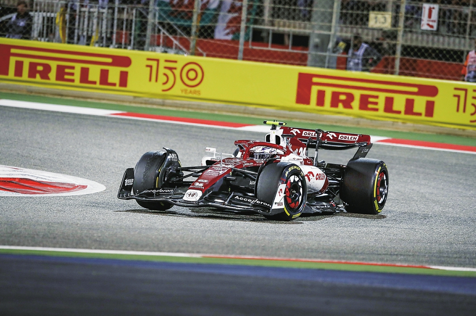 3月20日,阿尔法罗密欧车队中国车手周冠宇驾驶赛车在比赛中。新华社发(阿尔法罗密欧车队供图)