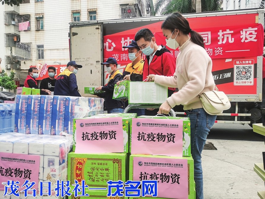 在捐赠仪式现场,茂名晚报记者看到茂南区新阶联捐赠组一行与城南街道志愿者一起,在茂南区委统战部领导的带领下,将物资清点好,并接力搬上车运送至城南街道。