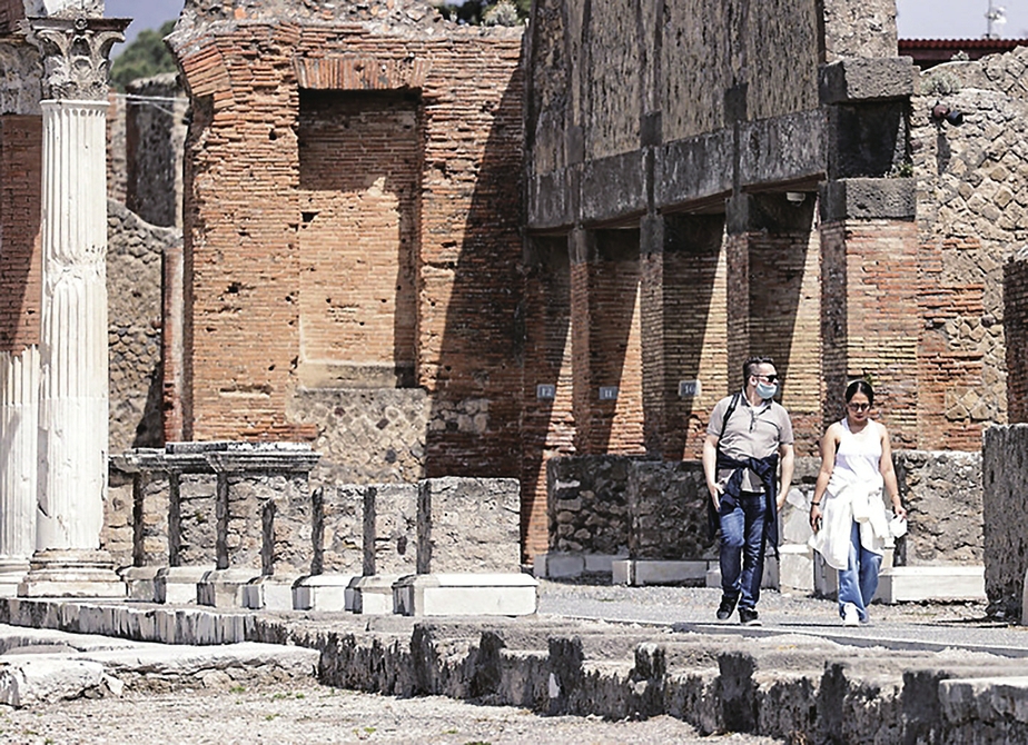 2021年4月27日,游客在意大利庞贝古城参观。新华社发
