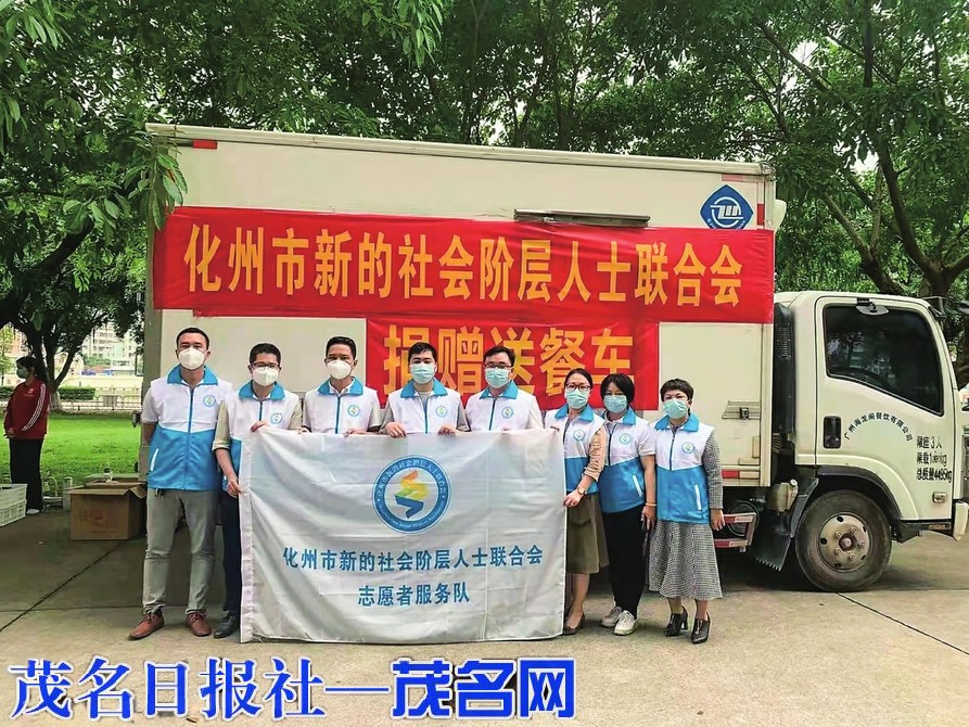 自疫情发生以来,化州市新的社会阶层人士联合会积极响应号召,充分发挥行业渠道和专业优势,第一时间组织全体会员发起“守护化州、同心抗疫”爱心捐赠活动,将最急需的物资和服务,以最快的速度送达一线,彰显新阶层“新担当”“新作为”。截至3月29日,共发动捐款60600元,31000只医用口罩、1420斤消毒液、400件矿泉水和面包、牛奶、桶面、金银花露、胶凳等一批物资。接到防疫志愿者招募令后,化州市委统战部马上发动新阶联会员参与,第一时间建立了由12名会员组成的新阶联志愿者服务队,冲锋在前,协助做好秩序维护、物资搬运等工作,在本次抗疫中尽显担当,为疫情防控贡献“新”的力量。该市新阶联会长戴仁禧向一线的医护人员、志愿者等防控人员每天免费提供200多份午、晚餐,让大家能吃上可口的饭菜,他表示:“工作人员坚守在抗‘疫’一线非常辛苦,我们只想力所能及地为他们提供后勤保障,保证他们能及时吃上热乎乎的饭菜。”