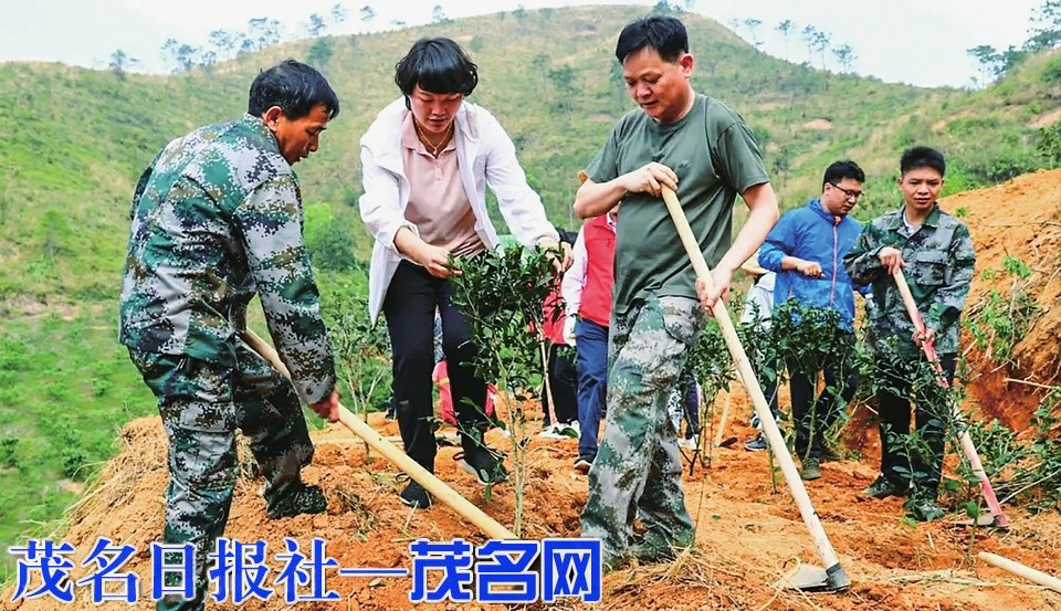 茶山党员干部带头种植茶树。茂名晚报通讯员王庆珍摄