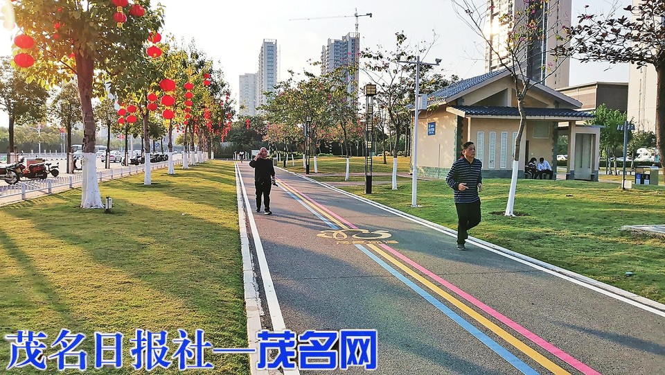 中心城区卫生环境面貌一新,市民在茂名绿道休闲健身。