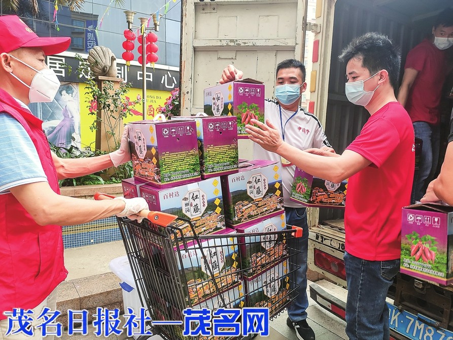 茂名晚报讯记者池榕通讯员黎贵 昨日上午,化州市丽岗镇爱心企业茂名村达科技有限公司向雄大御花苑封控区捐赠一批番薯,助力封控区居民生活物资保障。