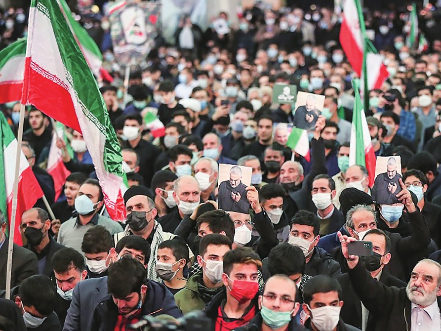 1月3日,伊朗民众在首都德黑兰举行纪念活动,悼念两年前遭美军空袭身亡的伊朗高级将领苏莱曼尼,要求严惩参与暗杀苏莱曼尼的凶手。(新华社发)