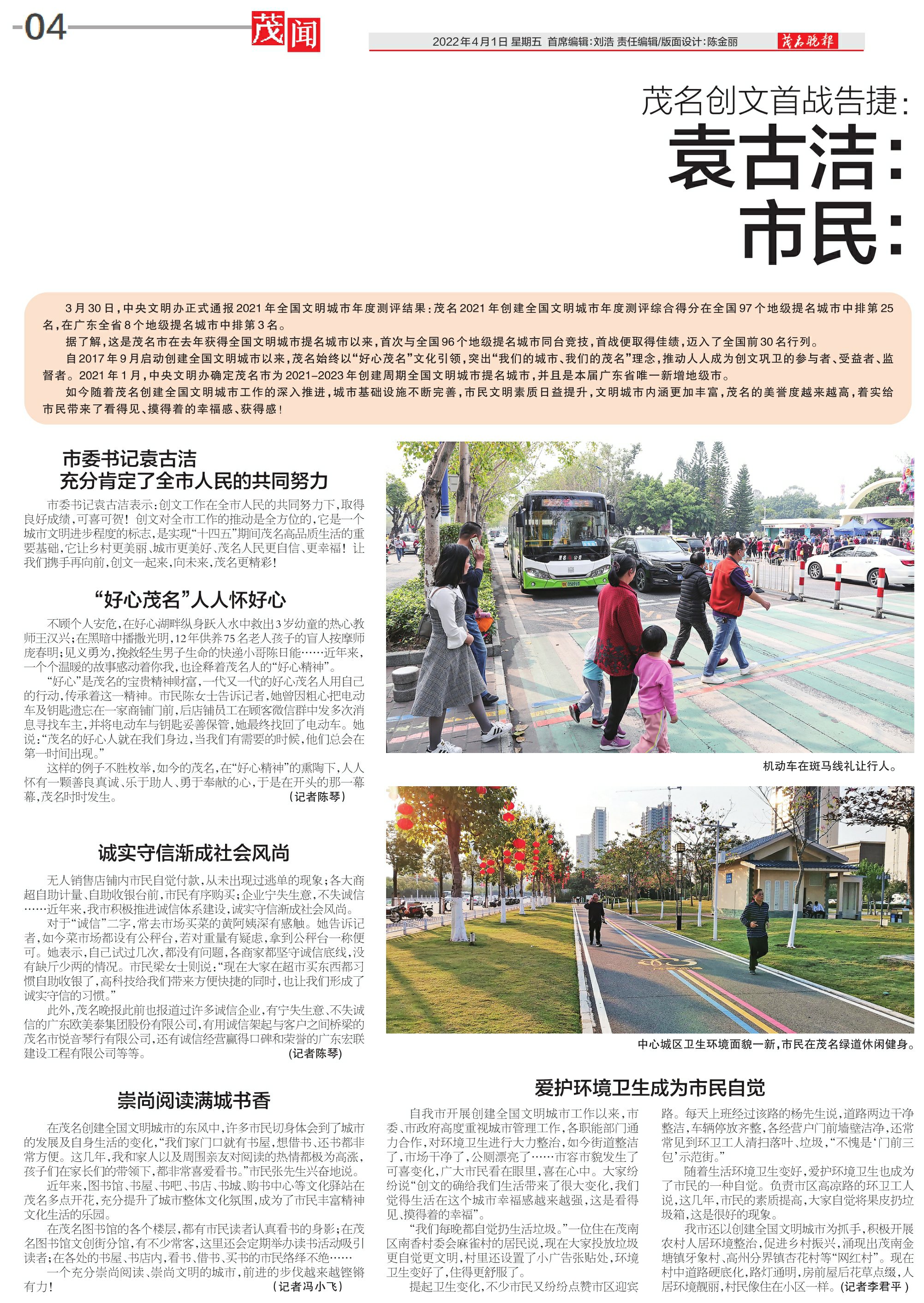袁古洁:创文一起来 茂名更精彩 市民:改变看得见 幸福享得到
