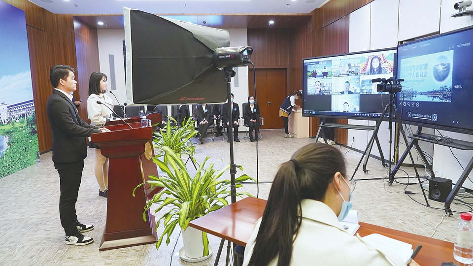 上海海洋大 学 2022届毕业生首场线上推介会现场。(受访者供图)