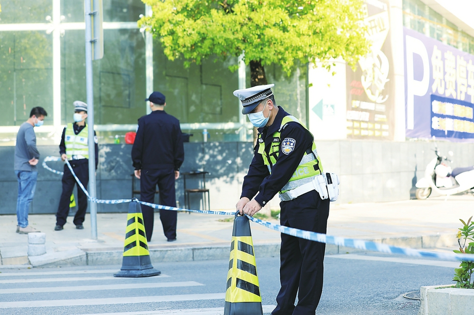 4日中午,交警迅速建起防疫安全线。茂名晚报通讯员杨金龙摄