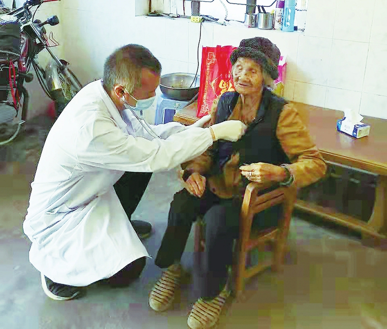 医务人员为老人进行健康检查。