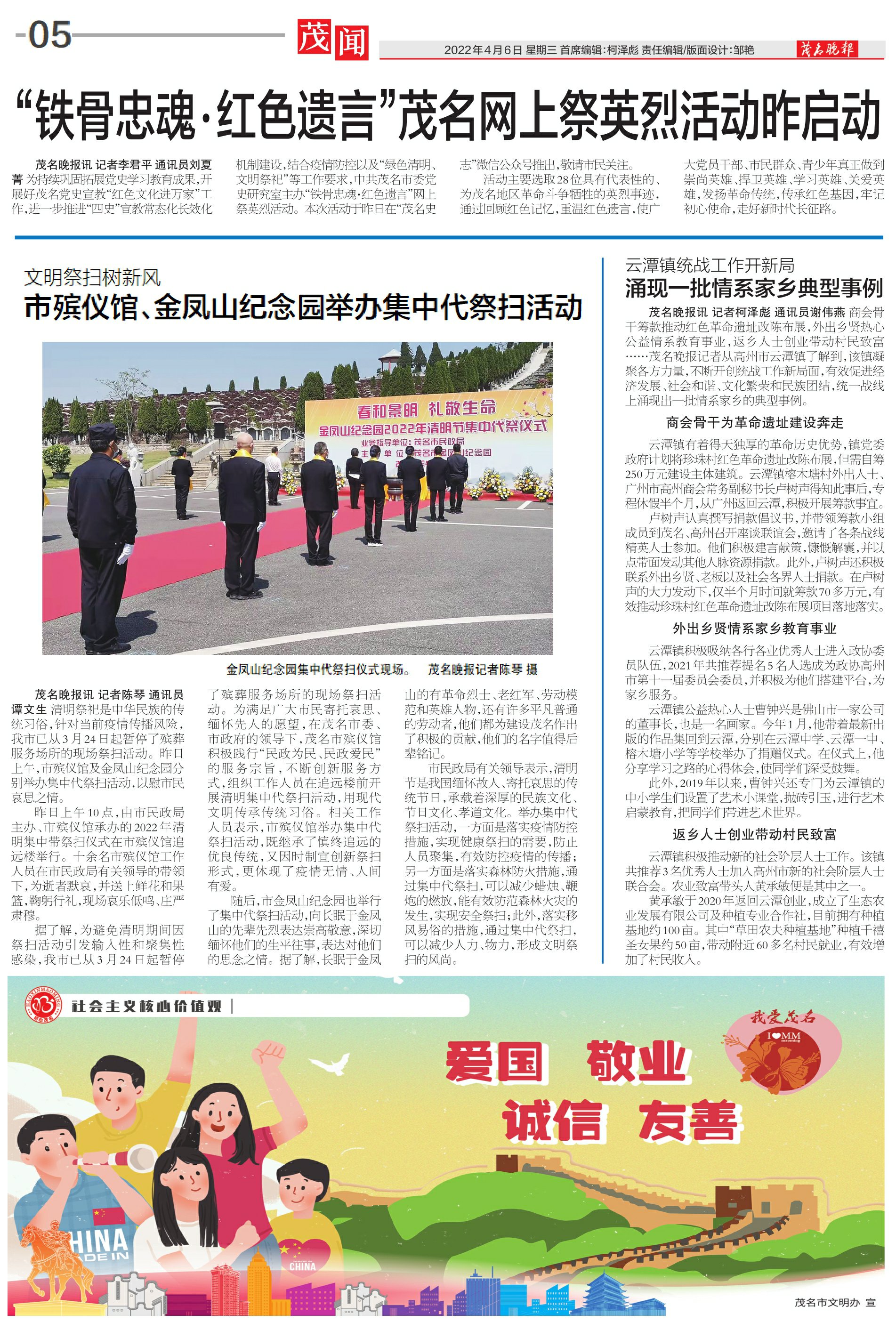 “铁骨忠魂·红色遗言”茂名网上祭英烈活动昨启动