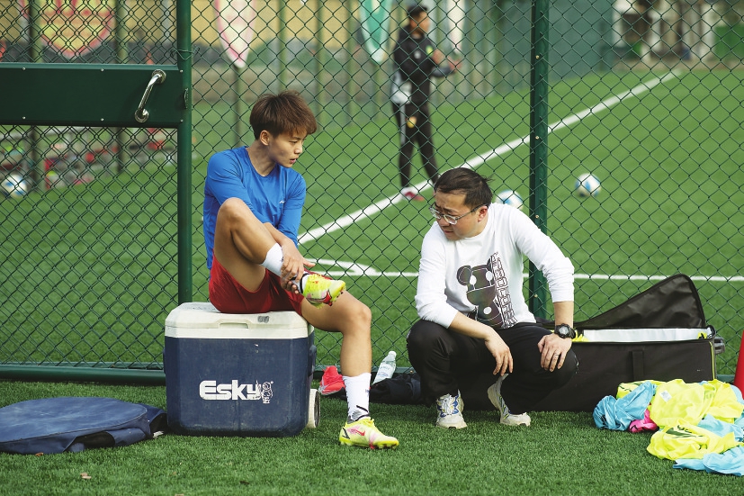四月的武汉艳阳高照。在居民楼与学校环绕的一片寂静绿地上,中国女子金球奖“大四喜”得主王霜与一群十四五岁的学生球员进行区域逼抢训练后,望着他们拉伸的方向若有所思。