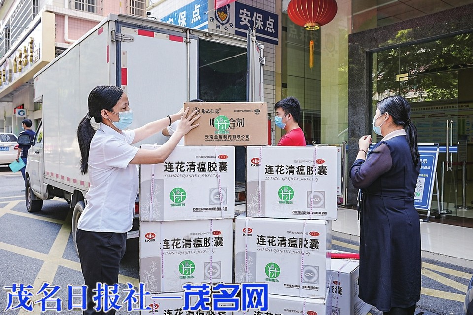 搬运药品。茂名日报社全媒体记者李陶然摄