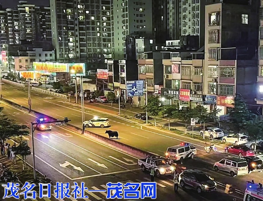 茂名晚报讯记者吴祖光通讯员文辉祥前日晚上,一头疑似失去控制且受到惊吓的牦牛,突然出现在信宜市迎宾大道城南附近路段,在马路上乱闯乱撞,对过往人车造成严重威胁。为保护人民群众的生命财产安全,接报赶到现场的信宜警方果断开枪将失控的牦牛击倒,避免了事态的恶化。