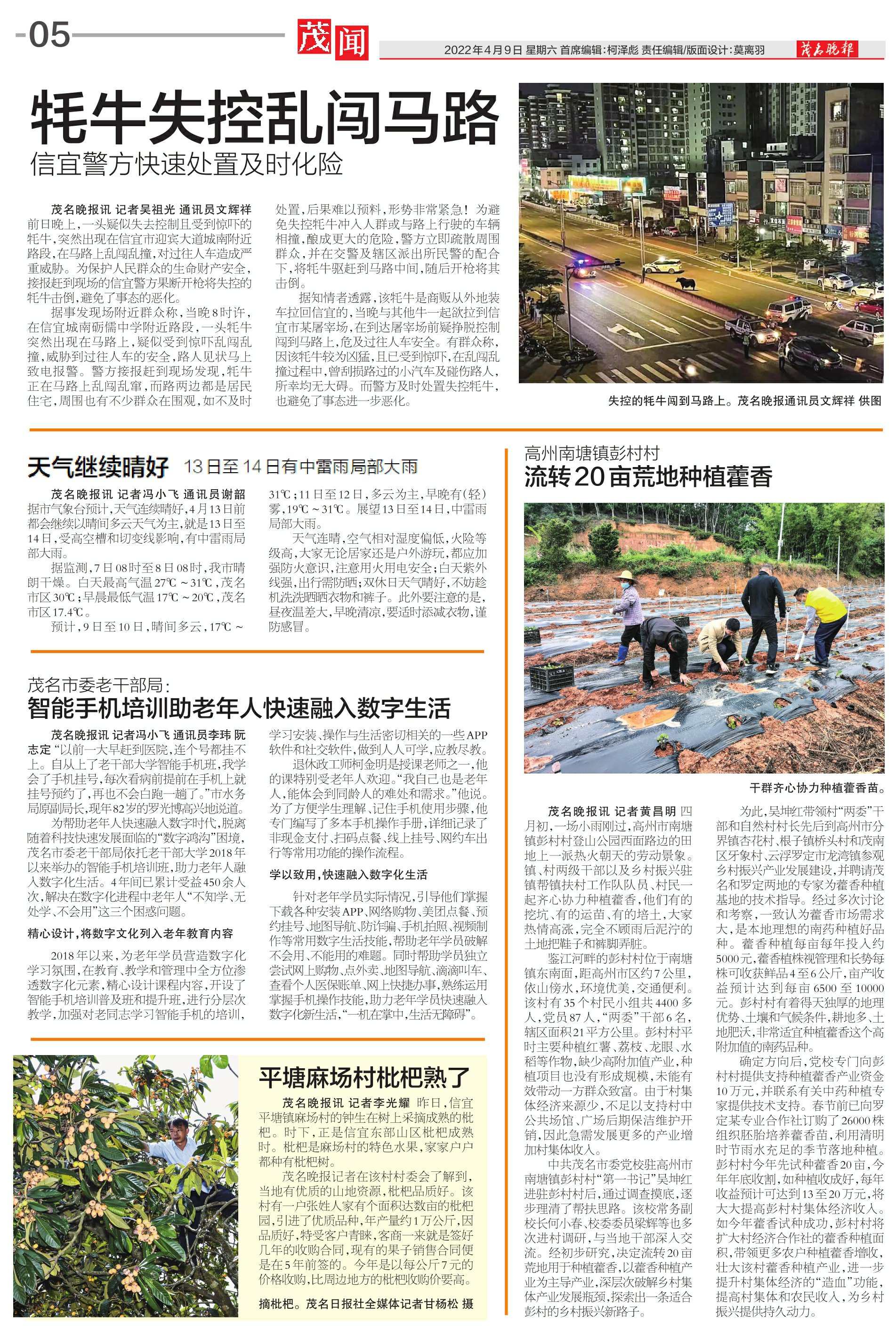 茂名晚报记者在该村村委会了解到,当地有优质的山地资源,枇杷品质好。该村有一户张姓人家有个面积达数亩的枇杷园,引进了优质品种,年产量约1万公斤,因品质好,特受客户青睐,客商一来就是签好几年的收购合同,现有的果子销售合同便是在5年前签的。今年是以每公斤7元的价格收购,比周边地方的枇杷收购价要高。