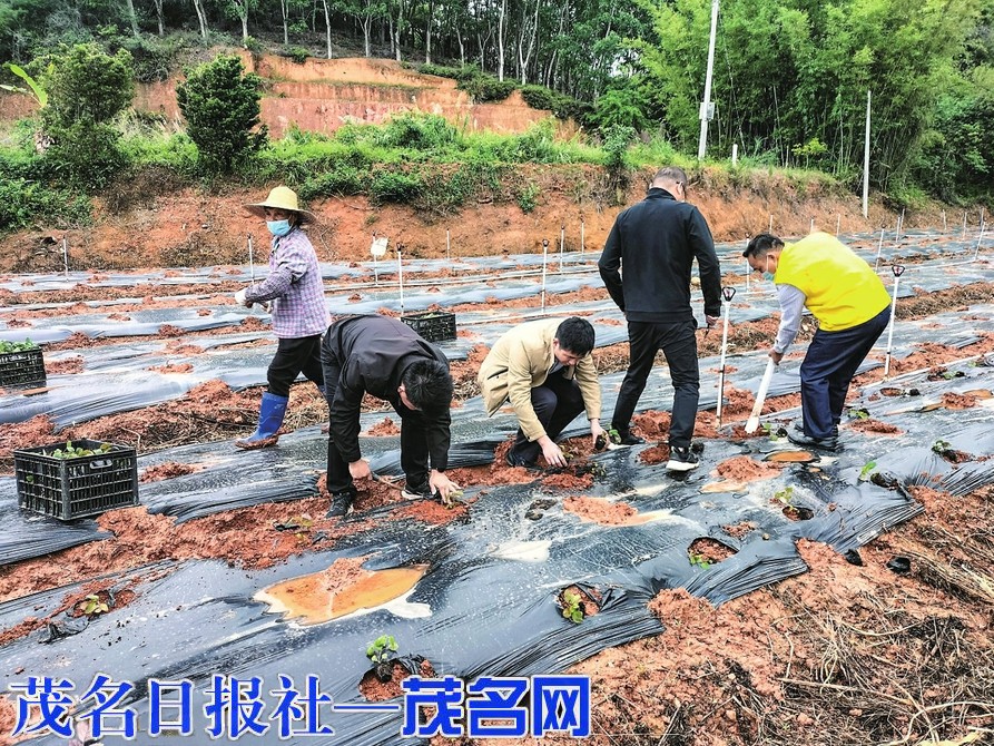 茂名晚报讯记者黄昌明四月初,一场小雨刚过,高州市南塘镇彭村村登山公园西面路边的田地上一派热火朝天的劳动景象。镇、村两级干部以及乡村振兴驻镇帮镇扶村工作队队员、村民一起齐心协力种植藿香,他们有的挖坑、有的运苗、有的培土,大家热情高涨,完全不顾雨后泥泞的土地把鞋子和裤脚弄脏。